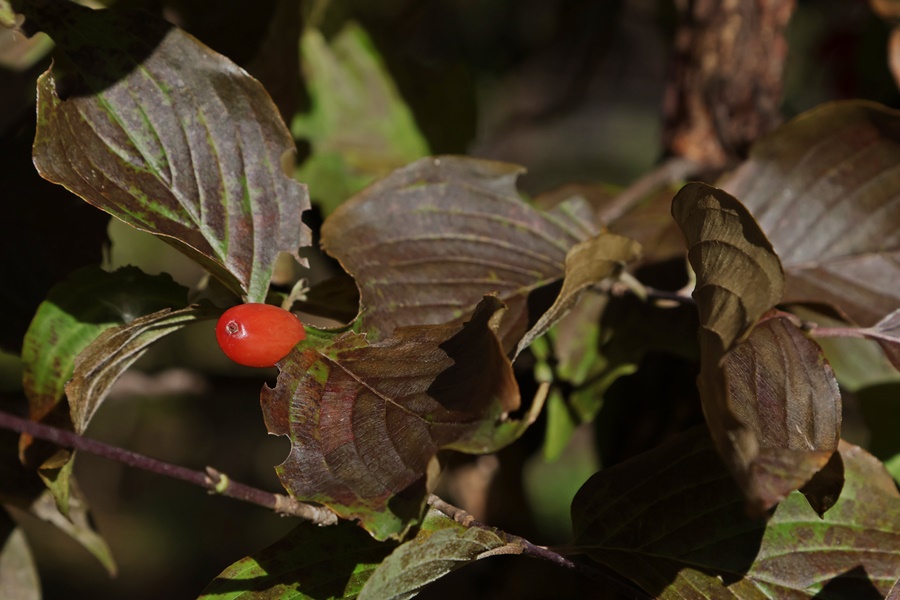 11월2일 일요일 아침 산수유 열매나무 잎에 서리가 와서 색갈이 변해 새삼 초겨울을 느끼는 날 입니다.