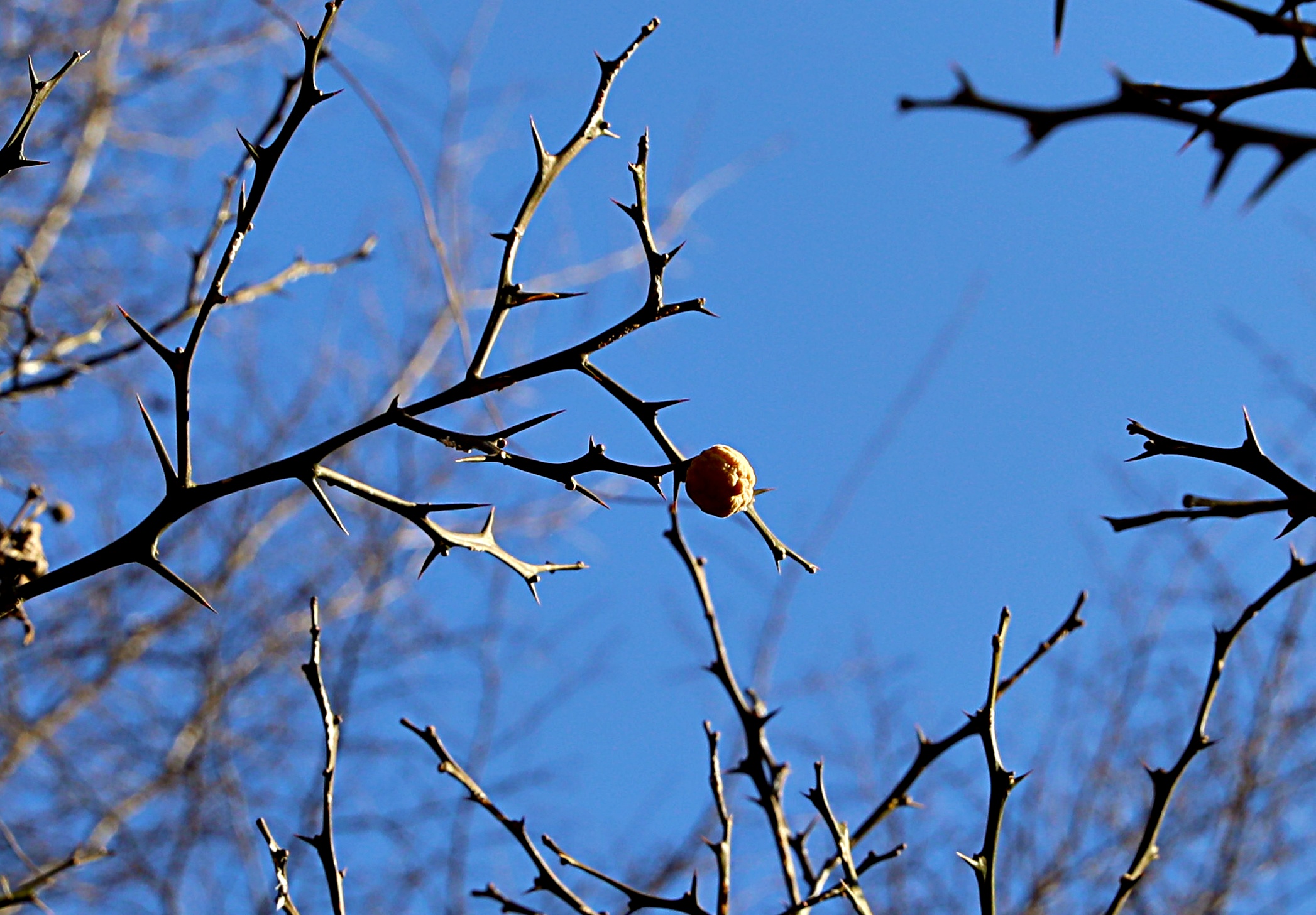 노란 탱자가 아직도 나무에 매달려 있는데 노란빛도 잃었고 수분도 말라 쪼글쪼글 하다