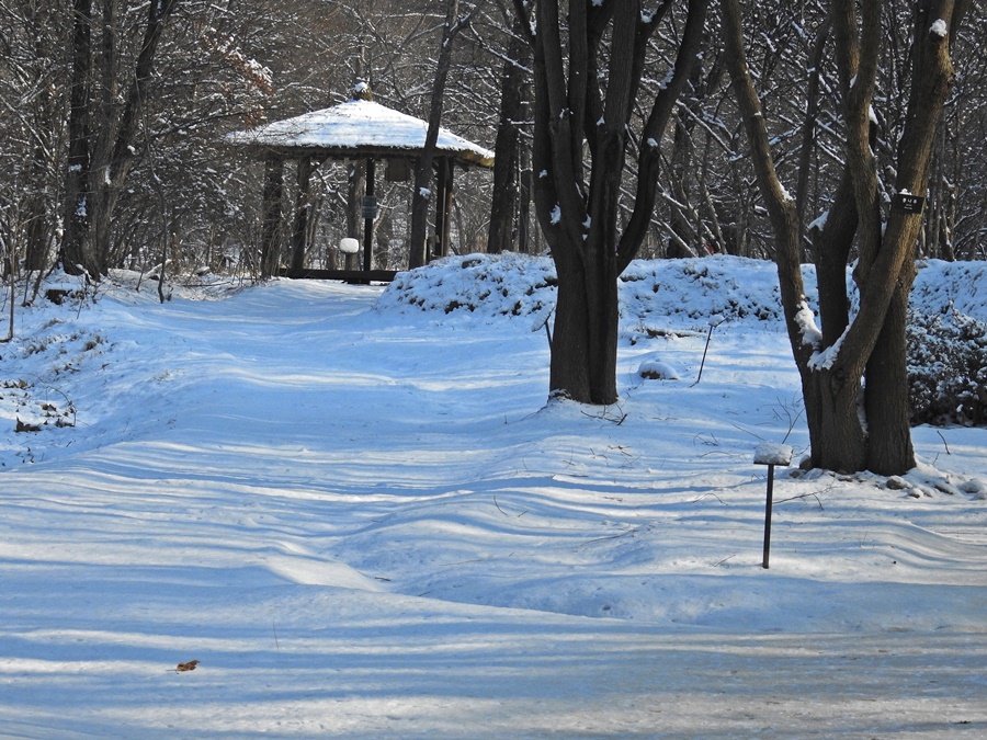 눈이 내린정자의 모습