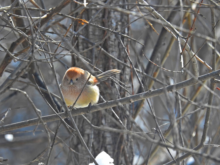 2월의 초순 새벽에 내린 눈으로 하얀 모습의 공원에 붉은오목눈이가 암전하게 앉아서 휴식을 하고 있는 듯 합니다.