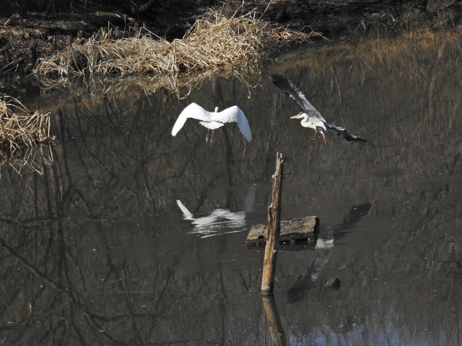 2월의 마지막날 따사한 오후 길동생태공원 연못에 왜가리와 중대백로가 날아와 만남의 장소가 된듯 하네요.