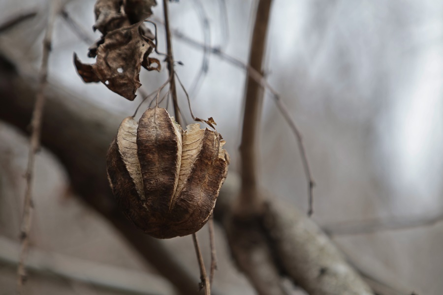 봄날 오후 길동생태공원의 길옆에 철지난 쥐방울덩굴의 갈색의 모습입니다.