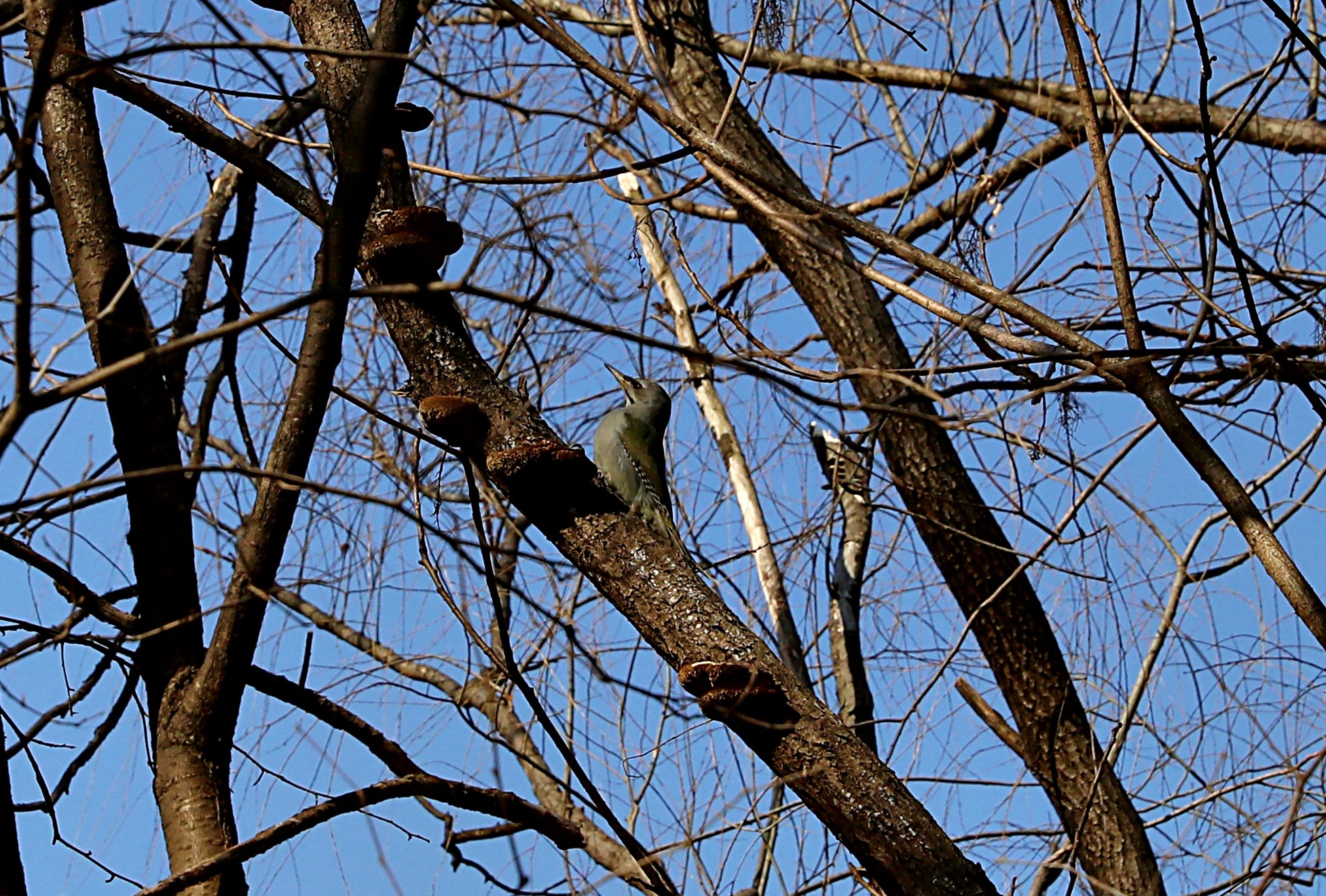 논병아리 연못 나무들 사이 청 딱따구리 한마리 나무들을 기웃 거리고 있다.