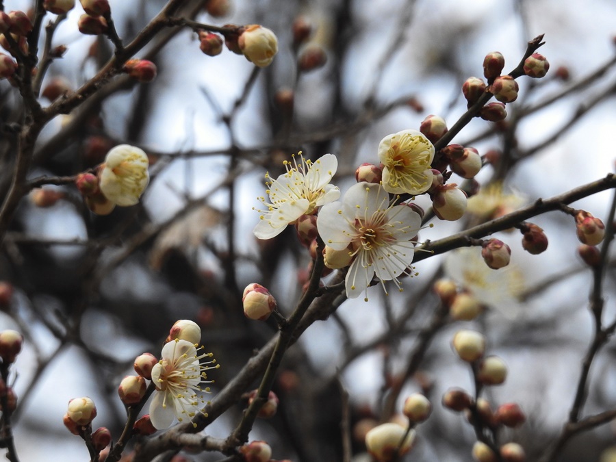 3월중순의 길동생태공원 매화나무 가지에 제법 많은 매화가 봄소식을 전하는 것 같아요.