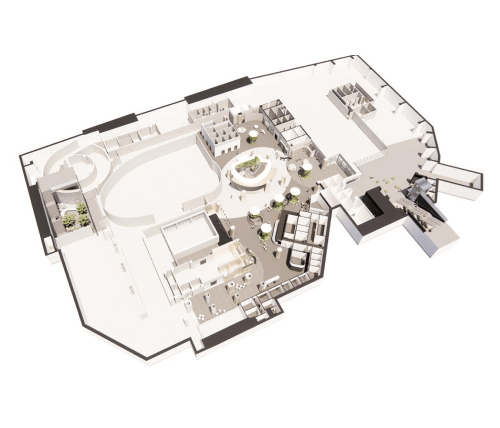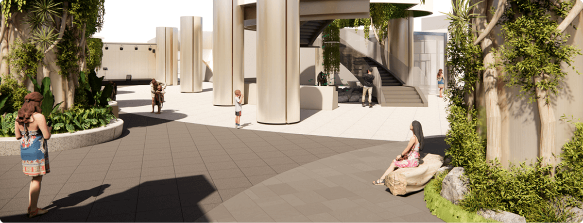 서울시청 본관의 정원이 뿌리처럼 내려져 미래의 서울로 이어지는