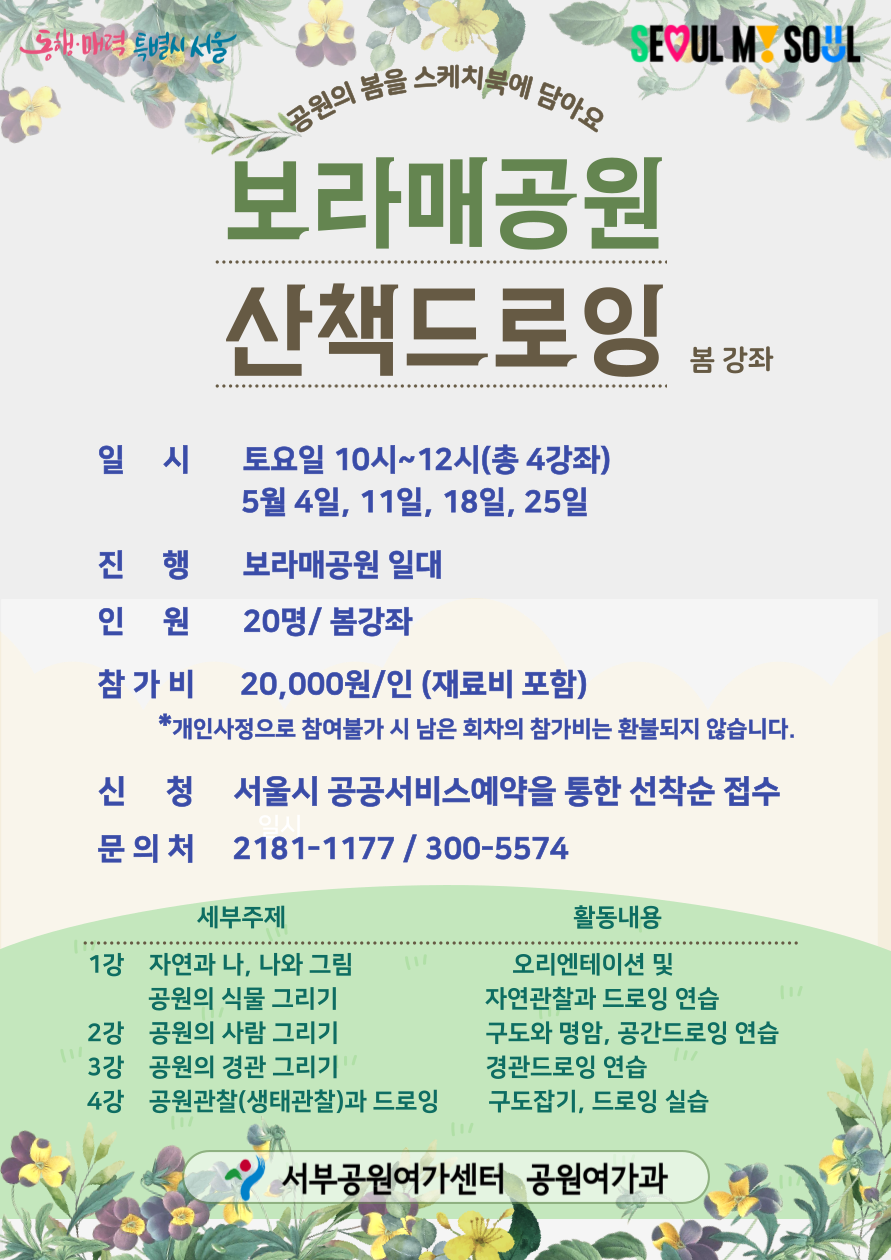 문의처 : 02-2181-1177, 300-5574(서부공원여가센터 공원여가과)