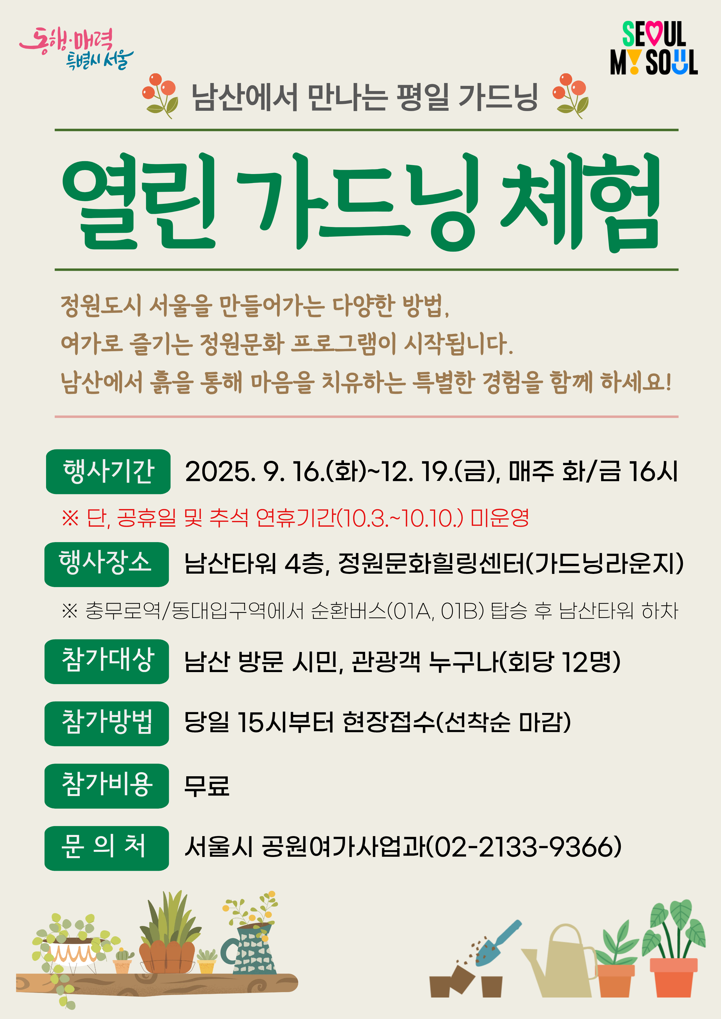 ○ 문 의 처 : 서울시 공원여가사업과(02-2133-9366)