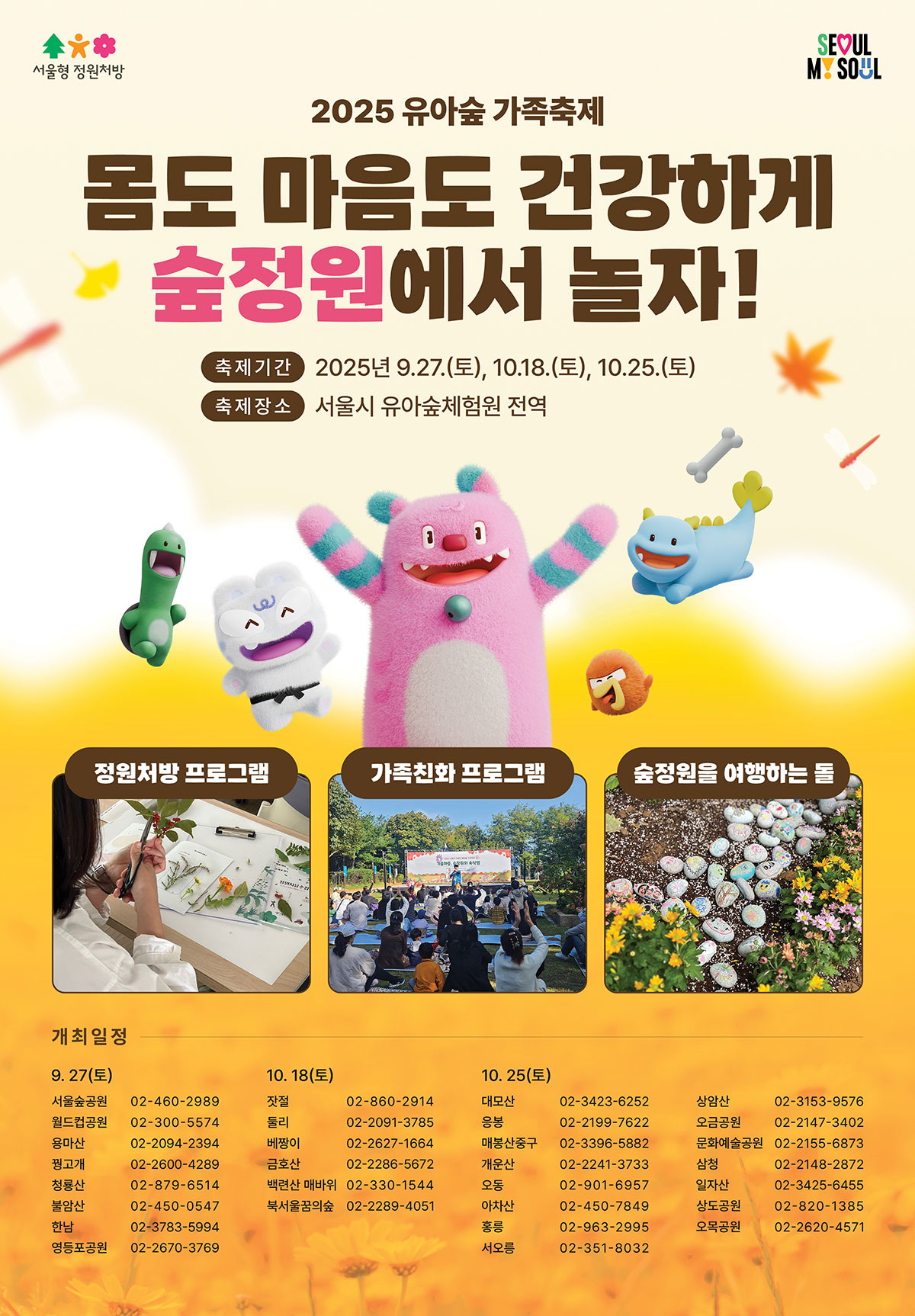 - 날짜, 시간, 장소 모두 개최 기관마다 다르니 방문하고자 하는 장소의 '공원여가센터'나 '자치구'에 꼭 문의하세요!