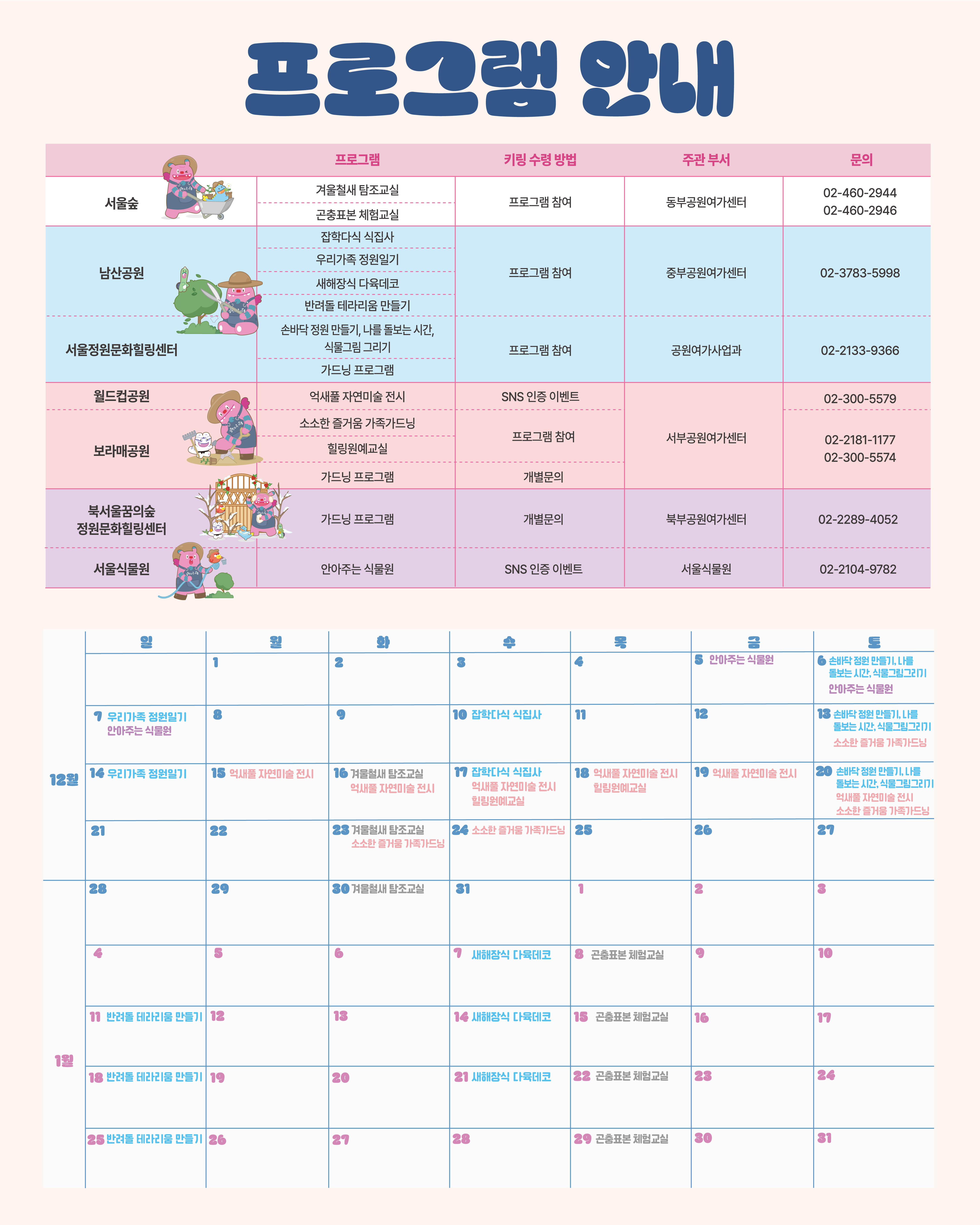 [월드컵공원 외] 2025년 12월 서부공원 이용프로그램 일정 안내
