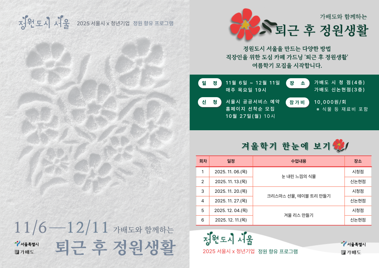 직장인을 위한 도심 카페 가드닝 프로그램 <퇴근 후 정원생활, 겨울학기>