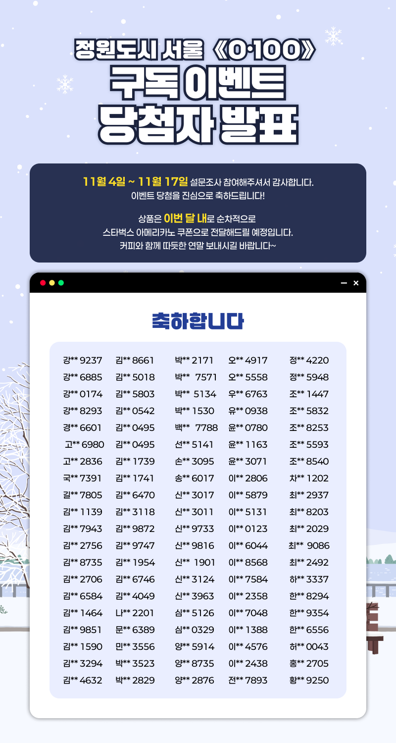 11월 4일 ~ 11월 17일 설문조사 참여해주셔서 감사합니다.