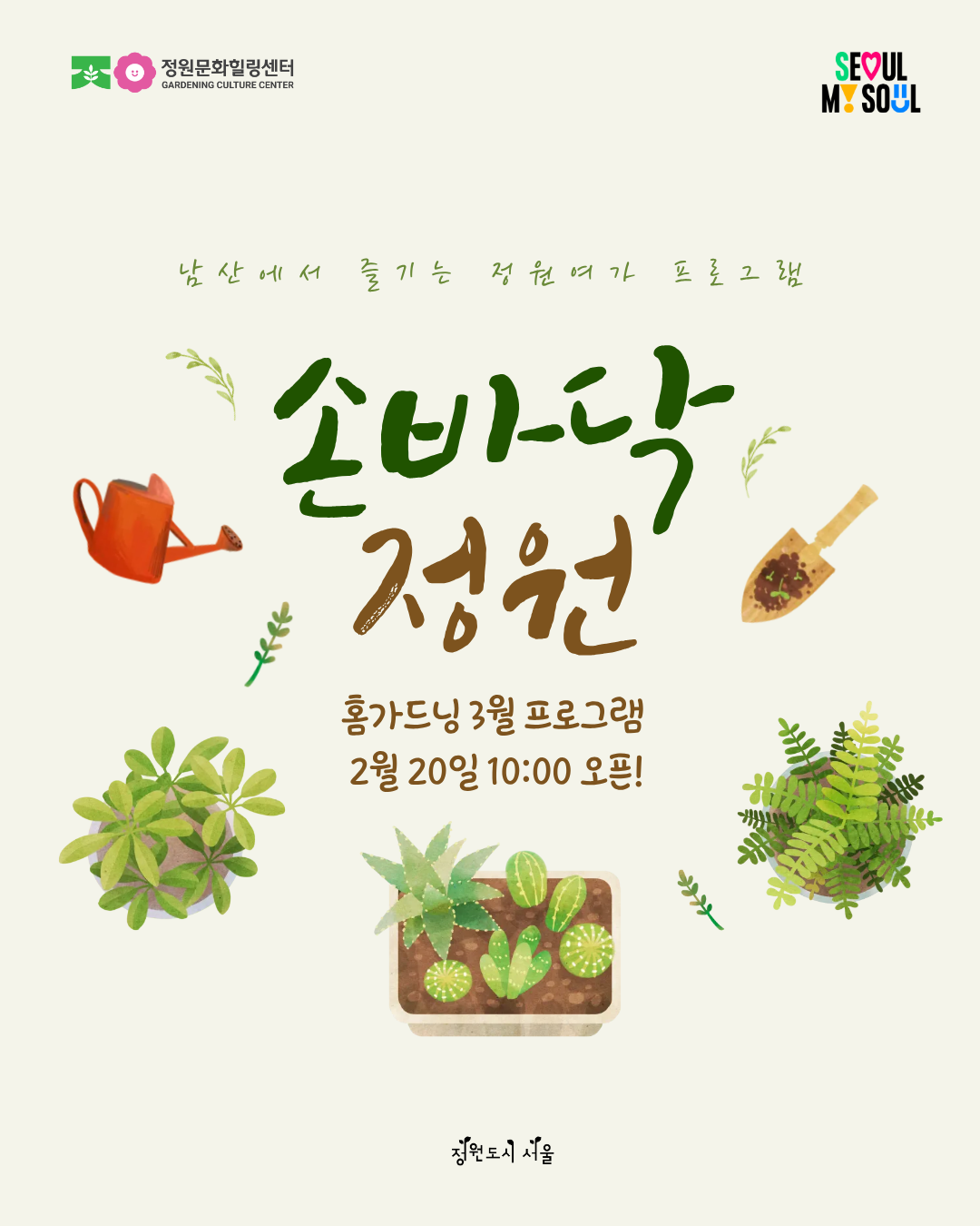 - 남산에서 즐기는 정원여가 프로그램 : 손바닥 정원(홈가드닝의 기초부터 응용까지)
