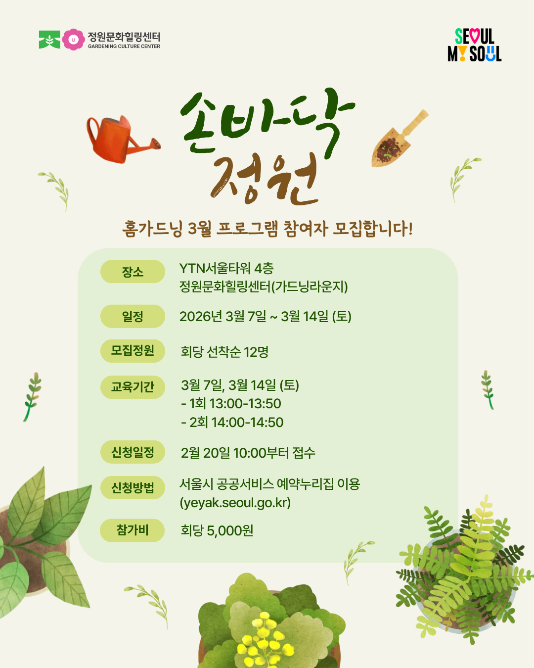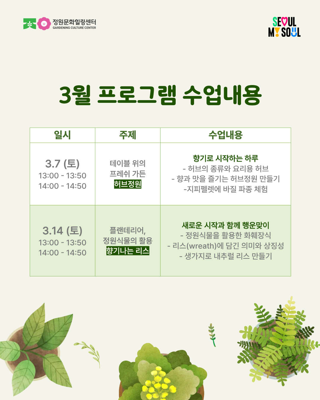 <가드닝라운지(서울 정원문화힐링센터) 프로그램 안내>